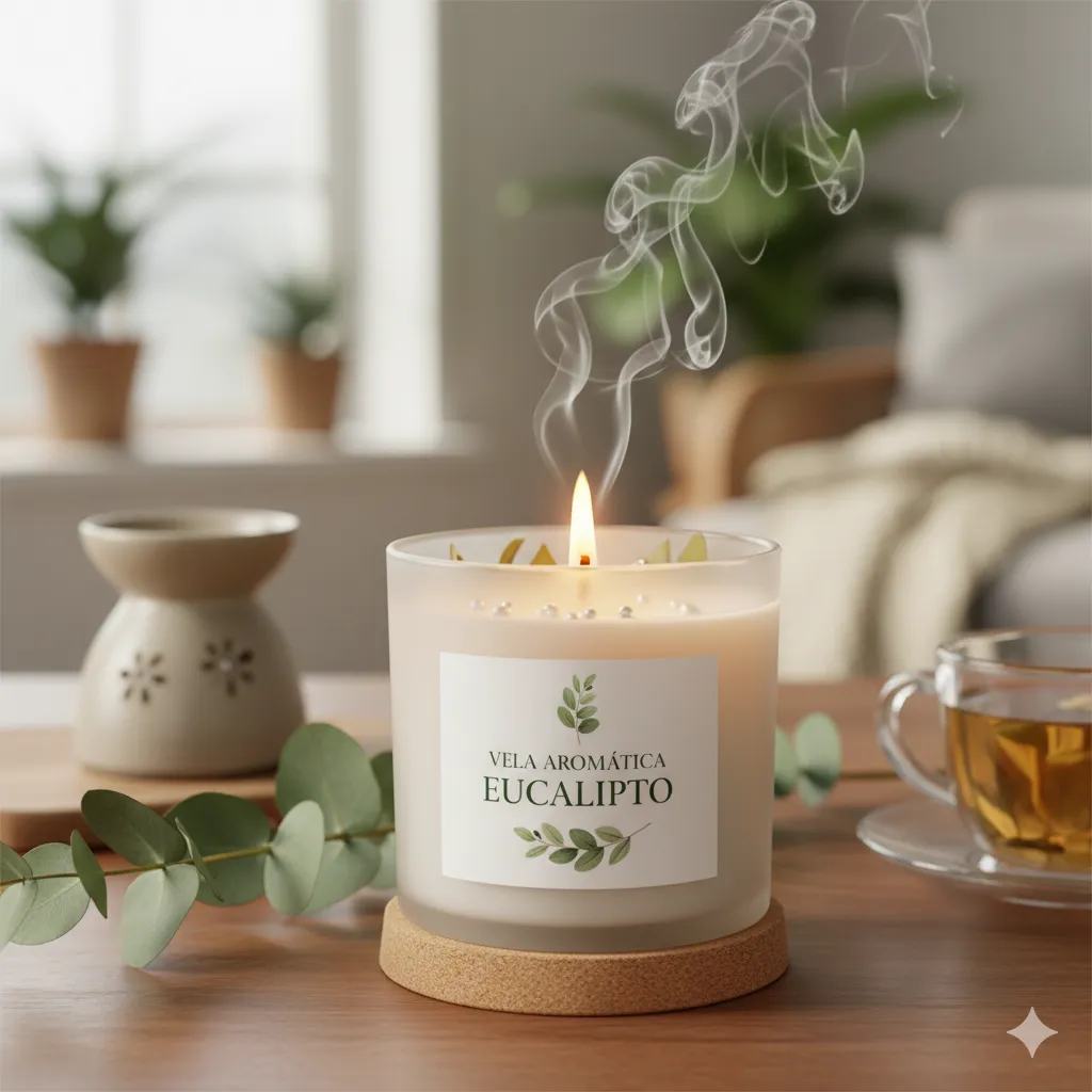 Fresca y revitalizante, esta vela con esencia de eucalipto ayuda a purificar el ambiente y crear espacios más limpios y serenos.